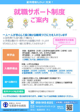 与那原中央病院では、就職される方を対象に「就職サポート制度」を設けています。